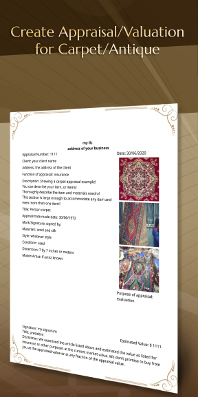 Create Appraisals or Valuations for Carpet/Antique