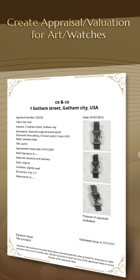 Create Appraisals or Valuations for Art/Watches