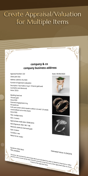 Create Appraisals or Valuations for Jewelery