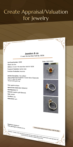 Create Appraisals or Valuations for Jewelery